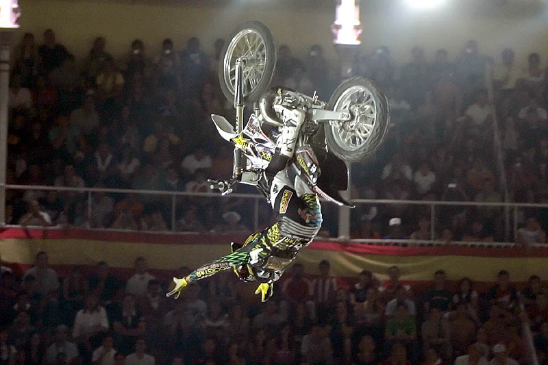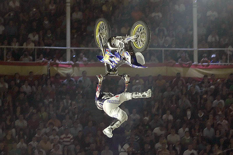 BRUTAL. Ese es el único calfiicativo posible para lo vivido esta noche en la Monumental de Las Ventas. Dos backflip dobles en una sola noche es demasiado para el cuerpo. Cameron Sinclair se ha ganado a pulso el estar en la final del Best Trick de este Red Bull X-Fighters Madrid 2009 con este salto de un riesgo increíble. Es más, muchos pensamos que tras una hazaña como la realizada esta noche, un segundo puesto es poco premio. En cualquier caso, grande, grandísimo el nivel exhibido por todos los pilotos en una noche mágica que ha hecho vibrar al público de Las Ventas. Os dejamos unas cuantas fotos para recordar el evento, aunque me temo que aquellos que hemos tenido la fortuna de vivirlo en primera persona no vamos a olvidar en mucho tiempo lo que hemos podido presenciar esta noche... ¡Que las disfrutéis!