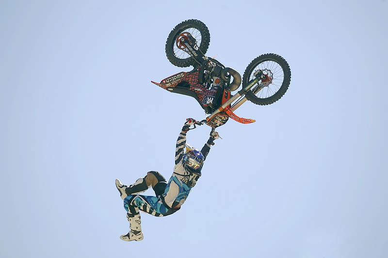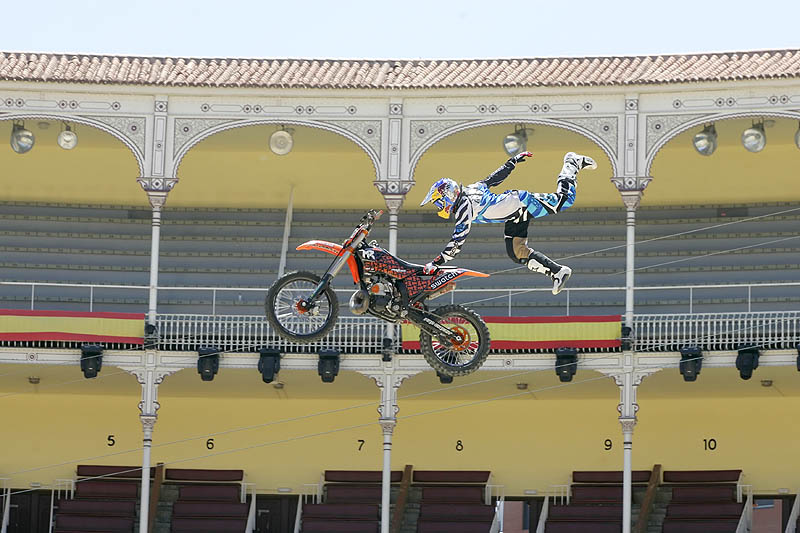 La primera mañana de entrenamientos en este Red Bull X-Fighters Madrid 2009 nos ha dejado muy buen sabor de boca. Hemos visto un altísimo nivel en todos los pilotos sin excepción y se palpa en el ambiente la tensión por lo que se avecina esta noche. Nadie quiere ceder ni un punto y todos se están entrenando con mucha intensidad a pesar del tremendo calor que tenemos hoy en Las Ventas (42º al sol, marcaba un termómetro hace nada). Backflips de todos los colores y figuras arriesgadísimas para teñir de colorido y espectáculo la noche madrileña en el que es, al 100%, el mejor espectáculo de freestyle del mundo.