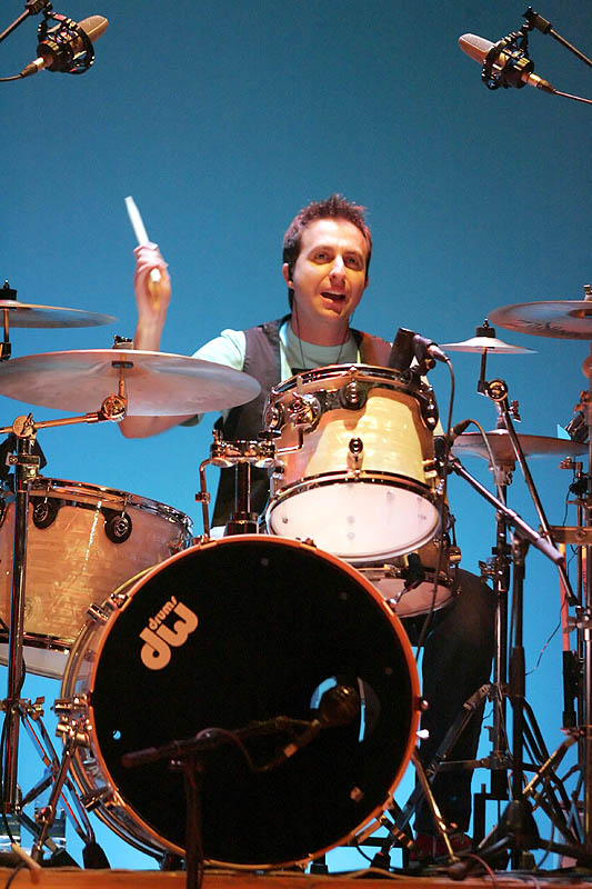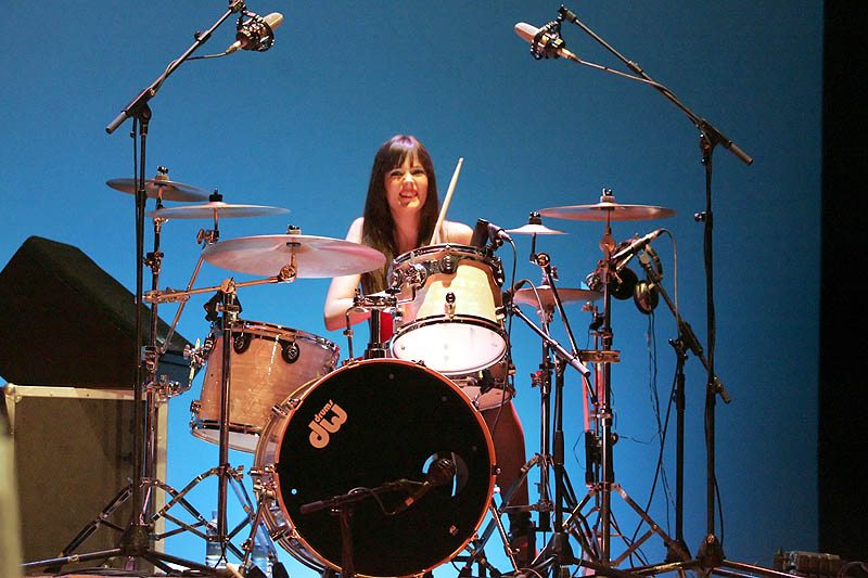 actuación, como la canción que interpretaron acompañados de un coro de niños y niñas que subieron al escenario para disfrutar con ellos y la canción interpretada junto a los ganadores del concierto "Súbete al escenario" (Alex, de Km.0 y Marina, de Arenae, que por cierto, tienen unas voces con mucha, mucha fuerza y un gran futuro...). Y no se acabaron ahí las sorpresas. Aún quedaba por llegar el que fue, en nuestra opinión, el momento más divertido de la noche: de repente se hizo la oscuridad y cuando volvió a ilumnarse el escenario, los componentes de El Pacto se habían intercambiado los papeles. El batería tocando el bajo, la solista a la batería, el guitarrista cantando, el bajista en los teclados y el teclista a la guitarra... El mundo al revés. Como podéis ver, sentido del humor tampoco les falta a estos magos del escenario.